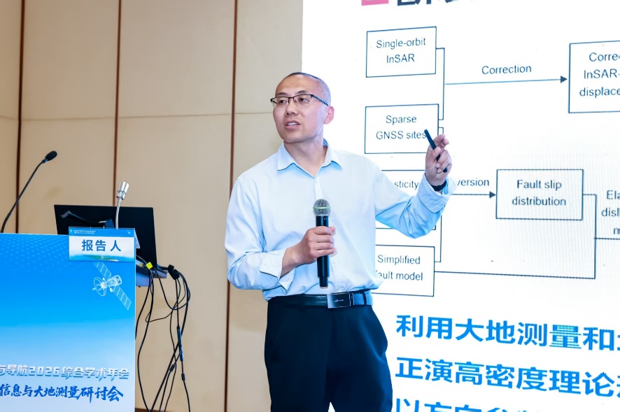 徐克科教授受邀作了题为《GNSS/InSAR观测与地学模型共同驱动的三维地壳形变场重建》的特邀报告。提出了一种融合GNSS与InSAR影像数据的创新架构,并引入地学先验模型作为约束,有效解决了异构空间数据融合难题。该成果实现了高精度、高时空分辨率的三维地壳形变场动态重建,在重大工程形变监测与地灾预警中实现了应用。