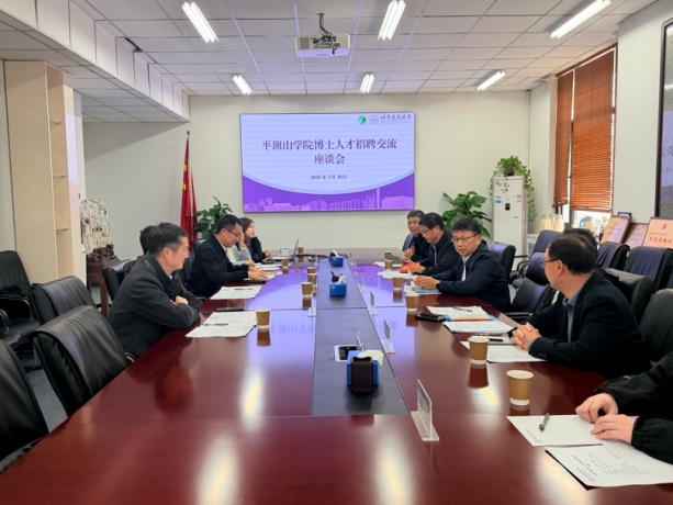 座谈会上,谷天硕对平顶山学院一行的到访表示诚挚欢迎。平顶山学院副校长史永昌详细介绍了该校的发展概况、学科布局以及针对博士等高层次人才的引进政策、福利待遇和科研启动经费等情况。我校相关学院负责人介绍了学科建设、科研平台、人才培养质量及高层次人才储备方面的情况,并希望通过此次机会搭建起长期稳定的博士人才供需平台。双方围绕人才需求、入职通道及产学研深度合作等议题展开了深入探讨。最后在互动交流环节,博士生代表主动与平顶山学院的相关负责人交流,对学校的引才诚意和发展潜力有了更直观的认识。